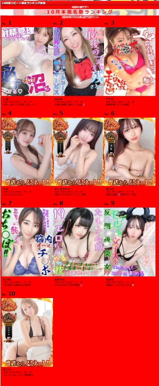 可愛い子が多すぎて選べない💦 顔も大事だけどプレイもガッツリ楽しみた!! そんなお客様には こちらのランキングを ご参考にして頂きたい!